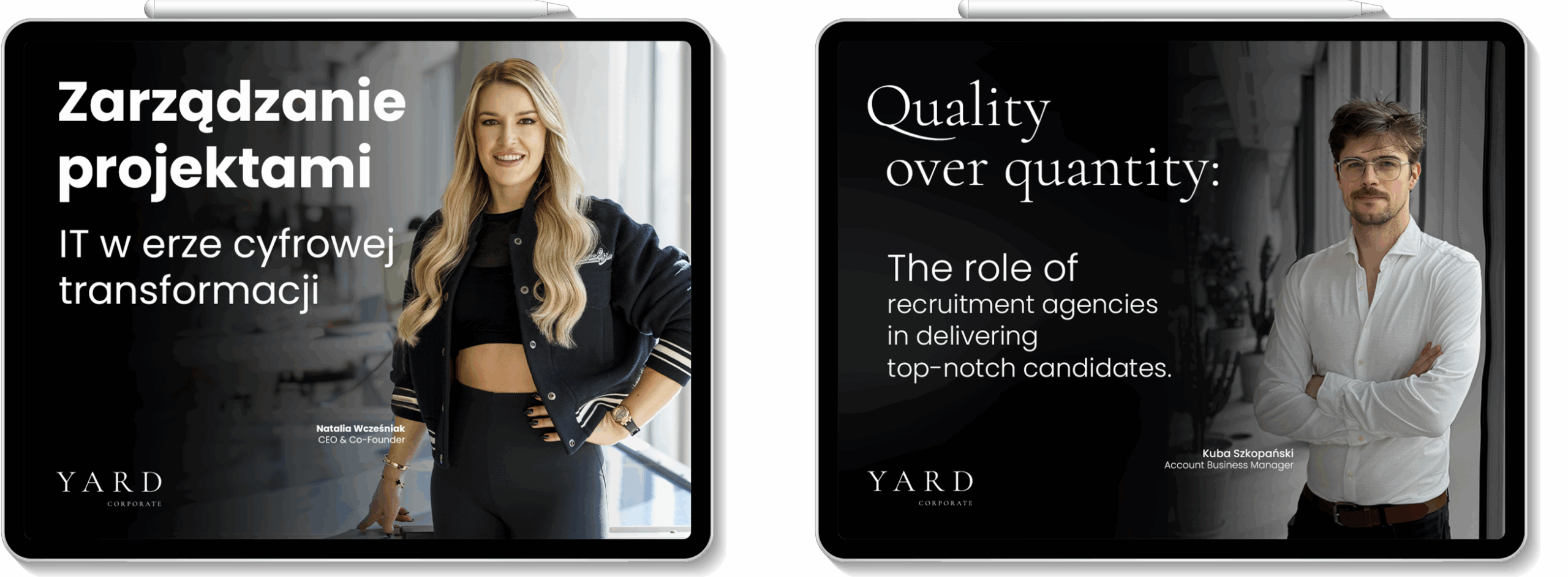 Yard Corporate to firma specjalizująca się w rekrutacji i zarządzaniu talentami w branży IT. Jej misją jest wspieranie firm w pozyskiwaniu wykwalifikowanych specjalistów, którzy w pełni odpowiadają potrzebom przedsiębiorstw.